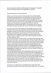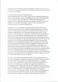 enthält u.a.: -Schriftverkehr, 2011-2019, u.a. Neckar castorfrei, Stilllegung und Abbau AKW Philippsburg 2 (u.a. Einwendung Wolfram Treiber), Hauptversammlung EnBW AG am 25.4.2013 (Digitalisat vorhanden), Strom, Bußgeldbescheide (u.a. Offener Brief an die Stadt Karlsruhe), Castor-Transport -Eingangsstatement von [Name] beim Erörterungstermin zu GNK 2, 27.11.2018 (Digitalisat vorhanden) -Auszug Wortprotokoll: Beitrag Wolfram Treiber beim Erörterungstermin "Stilllegungs- und Abbaugenehmigung (SAG) Philippsburg 2" (KKP 2), 2018 (Seite 18-25) (Digitalisat vorhanden) -Unterschriftenliste: Einwendungen KKP1 Philippsburg -Deutscher Bundestag: Antwort auf Kleine Anfrage, 27.8.2012 (Drs. 17/10548): Endlager Meeresgrund -Webseiten-Downloads, 2011-2019: Ordnungshaft gegen Umweltaktivistin, Entschädigung für Atomausstieg, Endlagerung, Menschenkette Fessenheim, Milliardenverlust für Atomkonzerne, Ausstieg aus Kernenergie, AKW Neckarwestheim, Flut US-AKW -verschiedene Protokolle -Geländeaufsicht (Satellitenbild?) AKW Neckarwestheim, 2011 -Kurzinformation: IG Metall Position zur Atomkraft und zur Energiepolitik / IG Metall Vorstand, 14.3.2011 -Vortragsfolien: Atomproteste gestern und heute? : Unerfreuliches Erbe der Atomforschung / Arbeitskreis Tschernobyl des Caracol, 28.4.2011 (mit Vortrag von Wolfram Treiber)