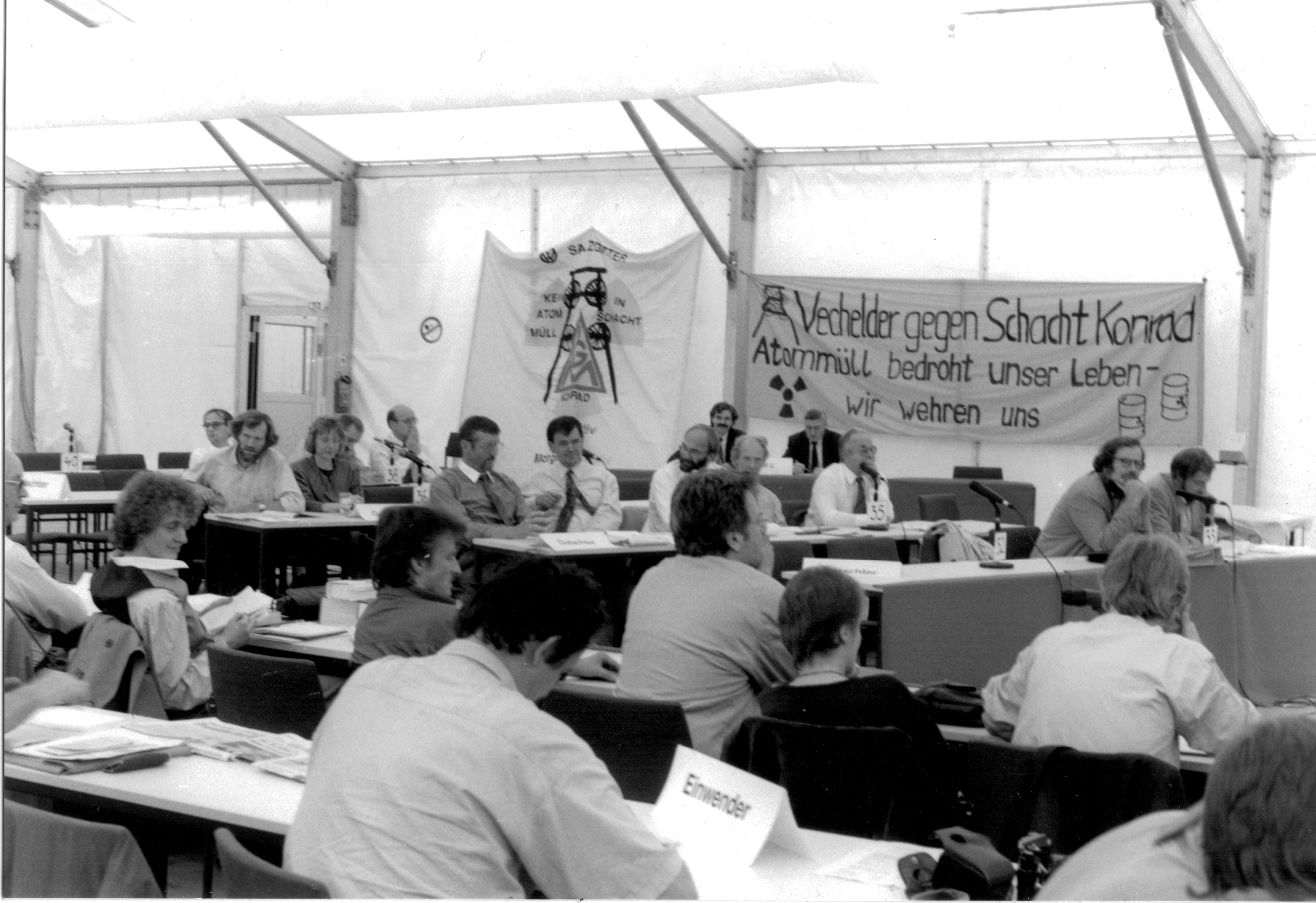 Notiz auf Foto-Rückseite: Schlagworte: Erörterungstermin, Salzgitter, Schacht KONRAD Zurück zur Übersicht Digitalisat im Archiv einsehbar | ||