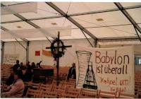 Signatur: S-1-14-26 Titel/Autor: Erörterungstermin : Bayerntag. Babylon ist überall - kehret um, 16.10.1992 Laufzeit: 1992-10-16 Umfang: Papierabzug, 12,5x18,7 cm, bunt