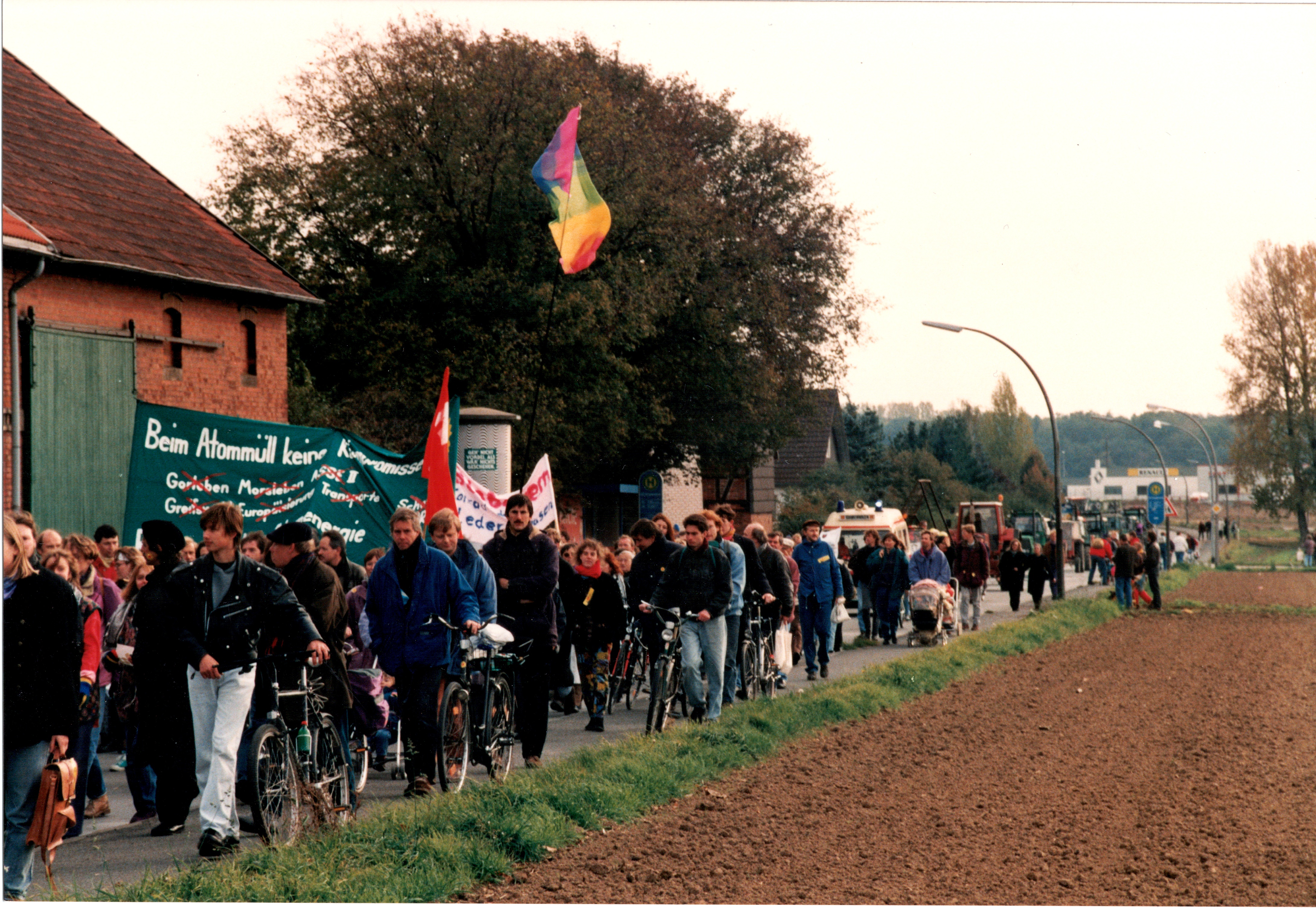 Signatur: S-1-15-14 Titel/Autor: Demonstration Erörterungstermin : Demonstrationszug auf dem Weg nach Salzgitter-Bleckenstedt, 17.10.1992 Laufzeit: 1992-10-17 Umfang: Papierabzug, 12,6 x 18,7 cm, bunt