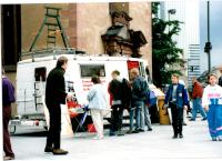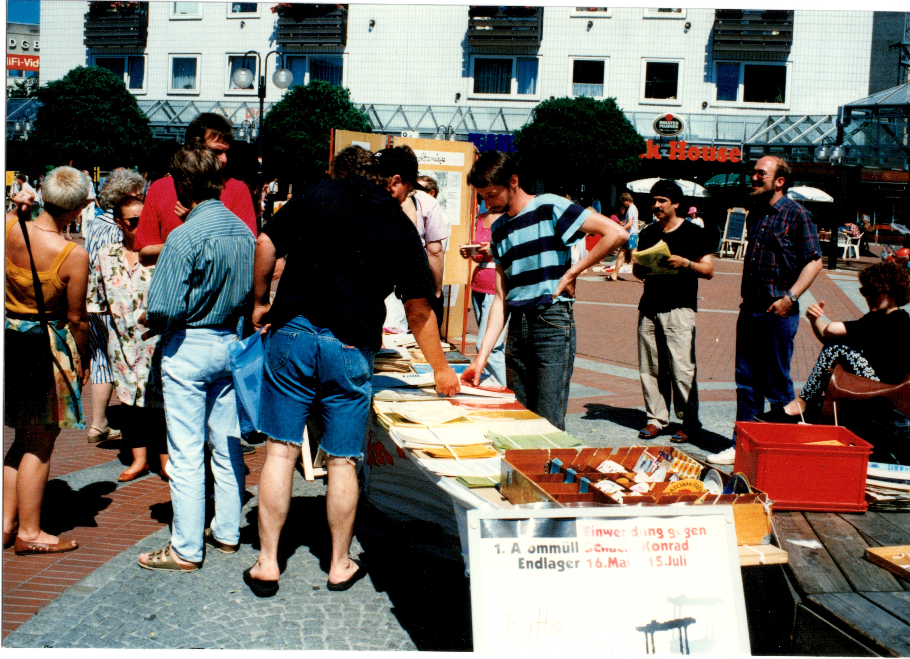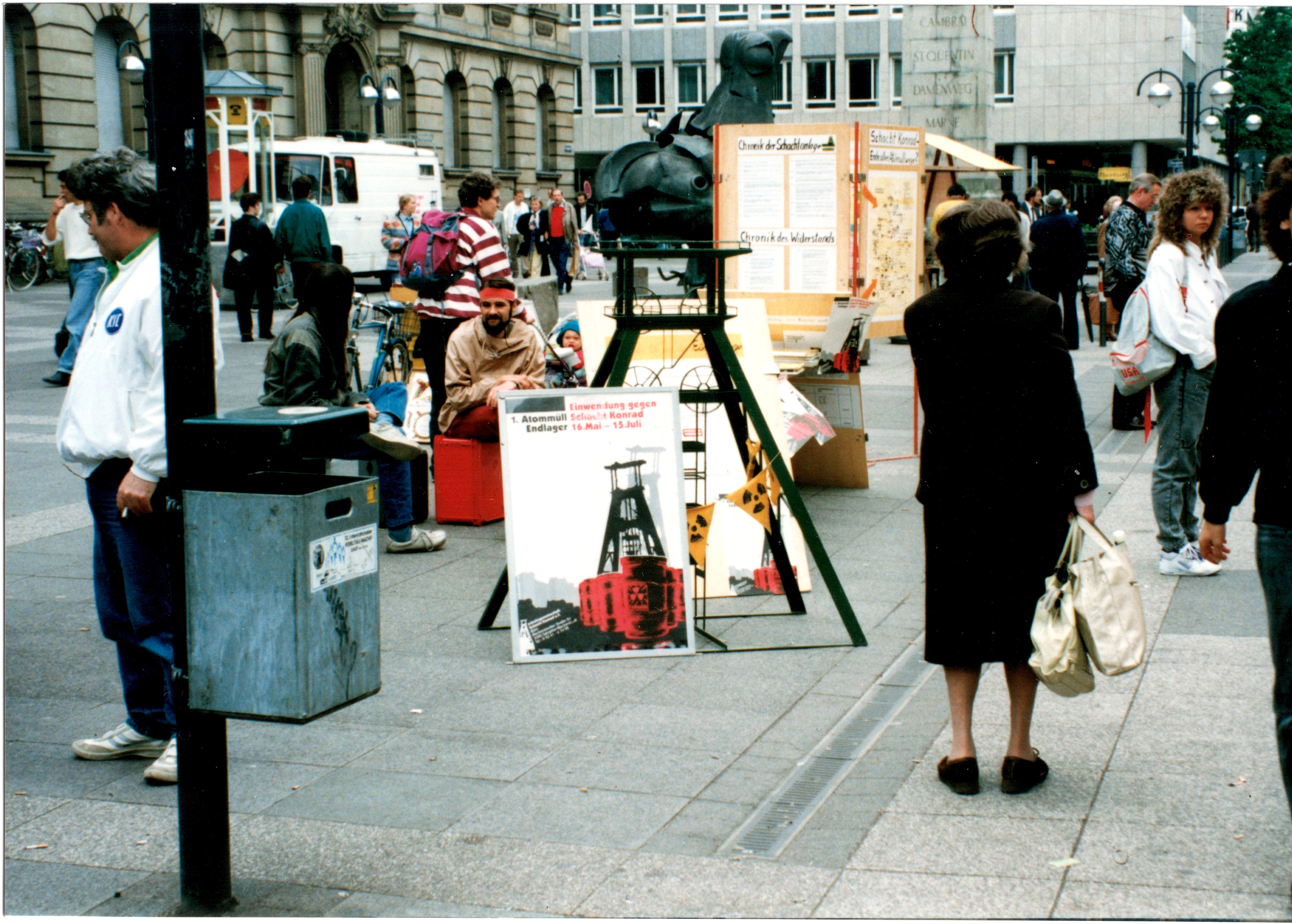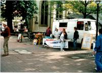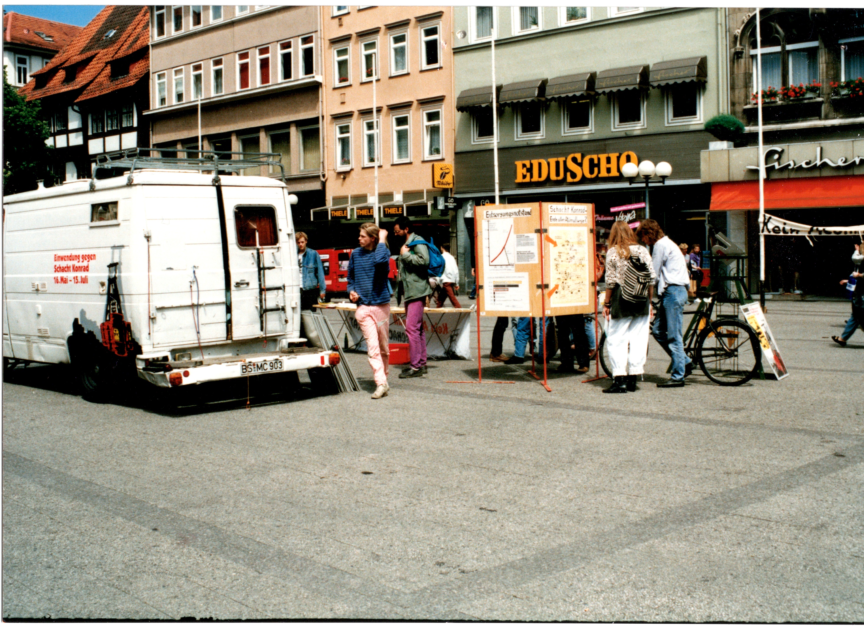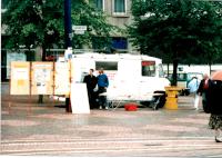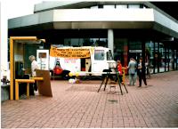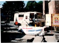 Signatur: S-1-9-32 Titel/Autor: Einwendungskampagne : Infobus in Göttingen, 12.06.1991 Laufzeit: 1991-06-12 Umfang: Papierabzug, 10x15 cm, farbig