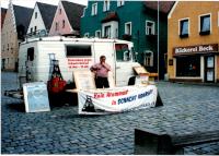 Signatur: S-1-9-23 Titel/Autor: Einwendungskampagne : Infobus in Landau, 08.06.1991 Laufzeit: 1991-06-08 Umfang: Papierabzug, 9x13 cm, farbig