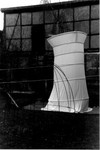 enthält: Fotos vom Aufbau eines selbstgenähten Stoff-AKWs und eines Stoff-Kühlturms für eine Aktion am 22.3.1990 in Düsseldorf